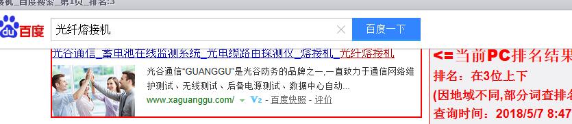 百度首页光纤熔接机网站优化案例