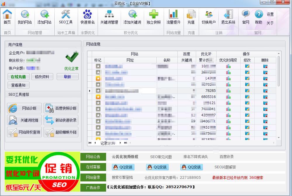 8运用云营销软件模拟点解,云营销软件是模拟人在百度检索框输入你想优化的关键词浏览你的网站,平均浏览网页量和平均浏览时间都有设置,而且IP地址都是不一样的。软件可以提升百度对网站关键词的关注度和友好度,从而使网站关键字排名迅速提升。